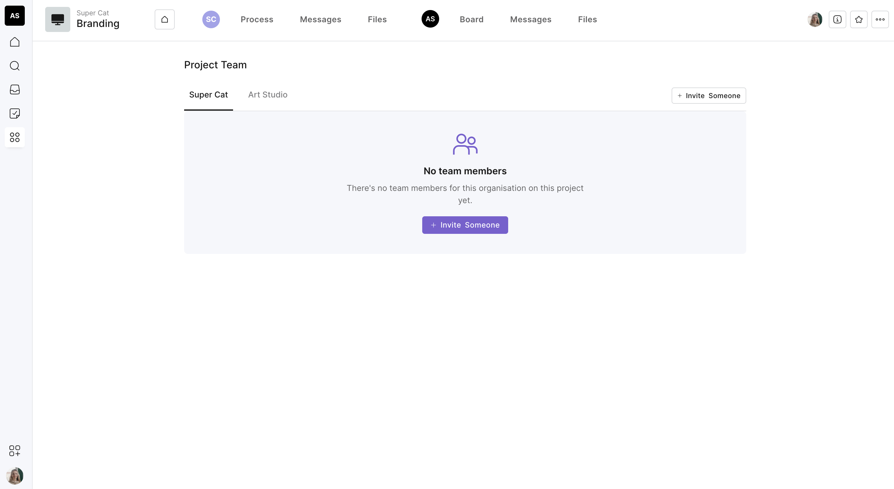 Click on 'Invite someone' — you can do this to add people from your internal team or tab across to the client team to invite clients