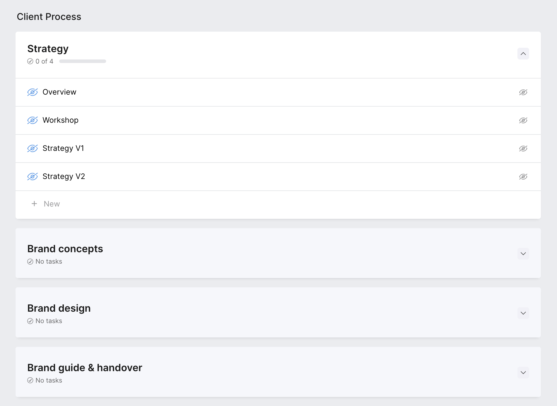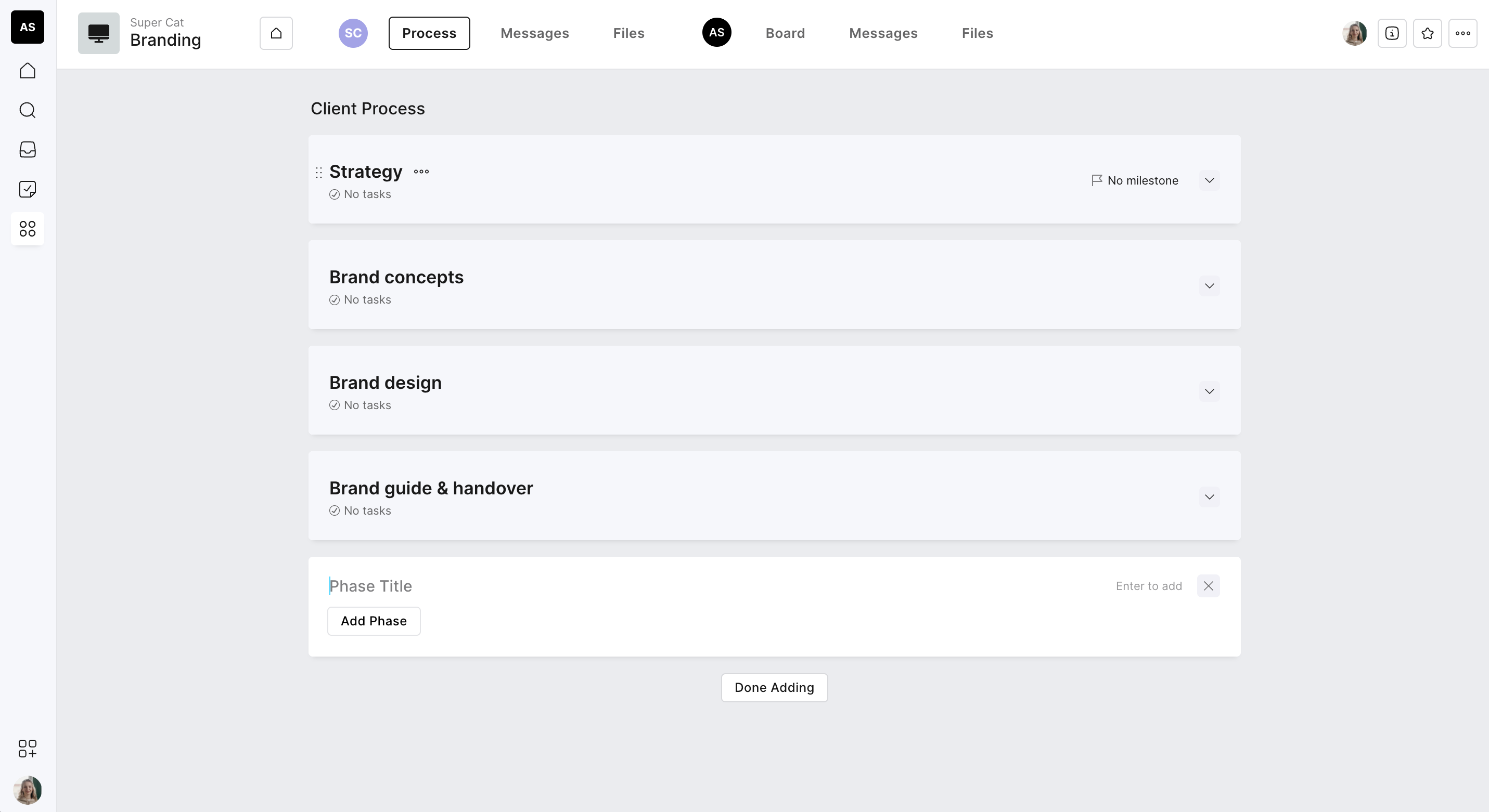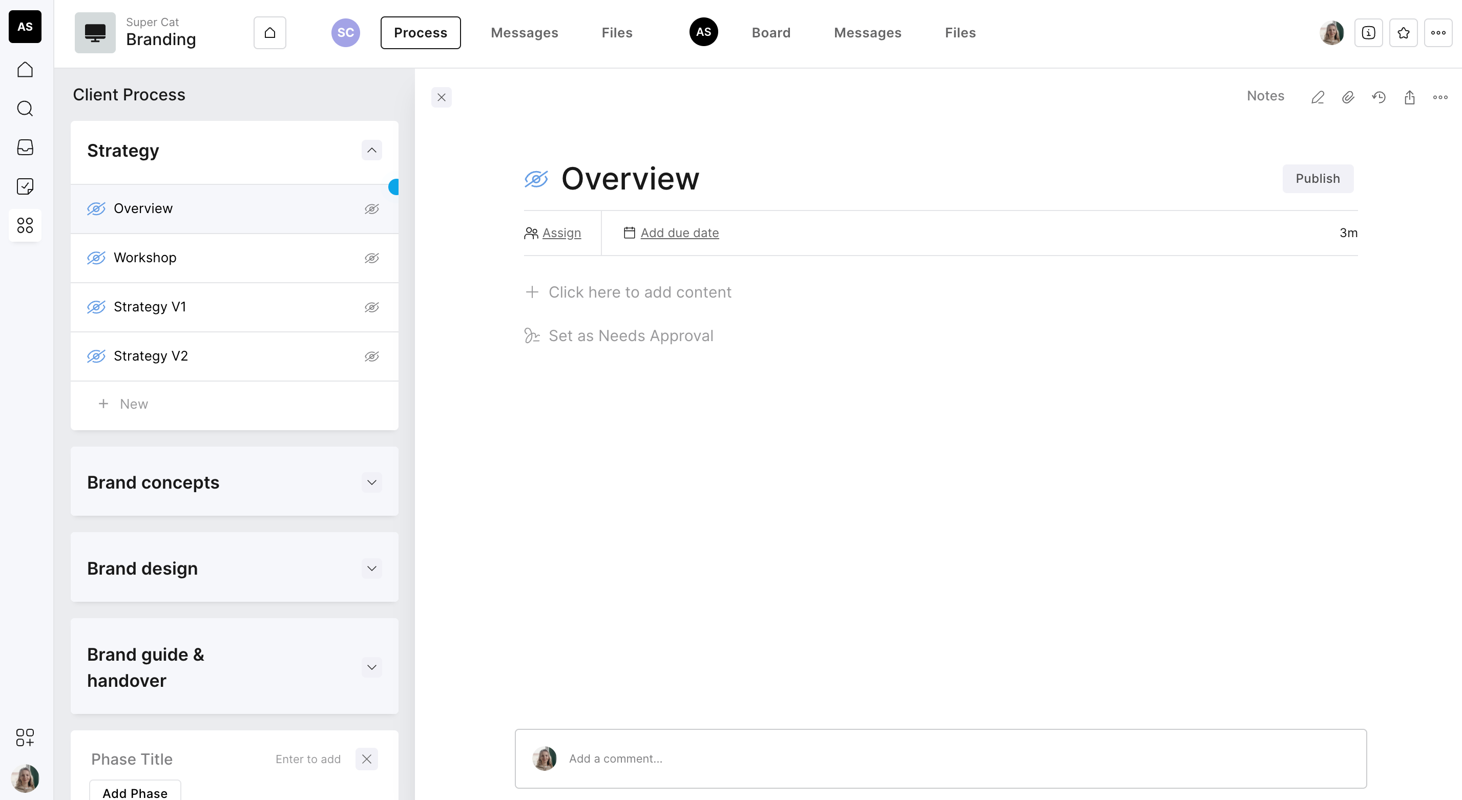 You will notice during the setup process that you can add an internal space. This gives you the ability to add either a task board or a process within the project just for your agency team and is hidden from your client. This enables a few benefits