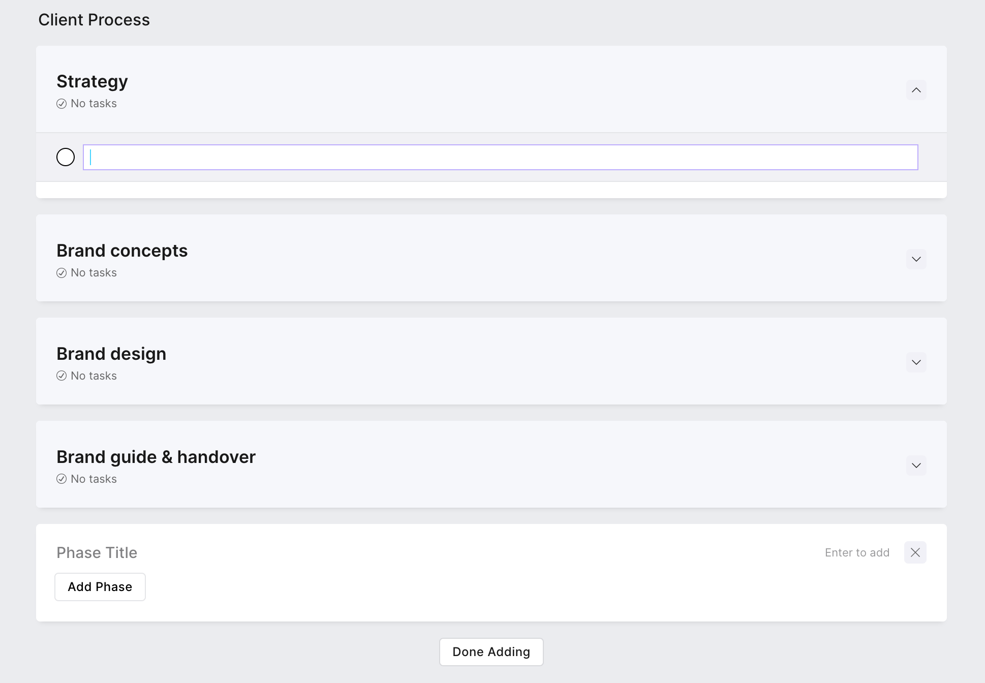 Once you have created your phases, you can then add tasks within each phase. This allows for more specific details.