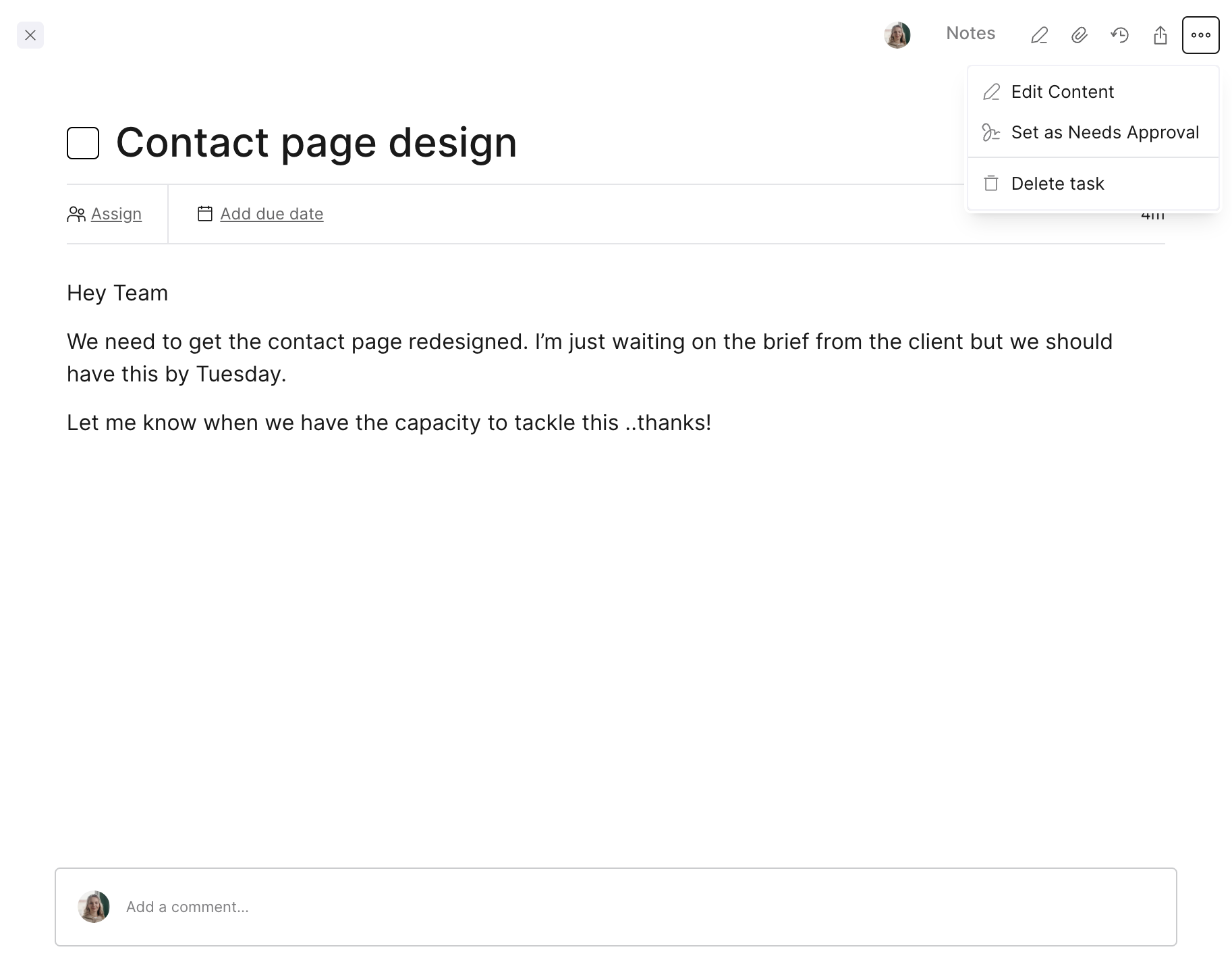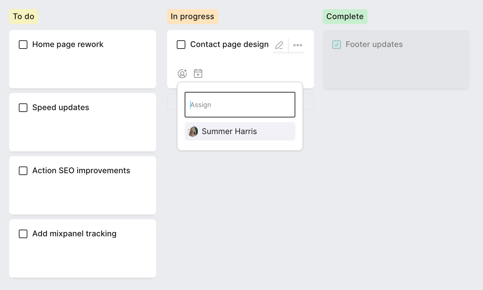 You can easily assign people to a Task or add a due date simply by hovering on the card. You can also edit the task title or copy a link to the card for easy sharing.