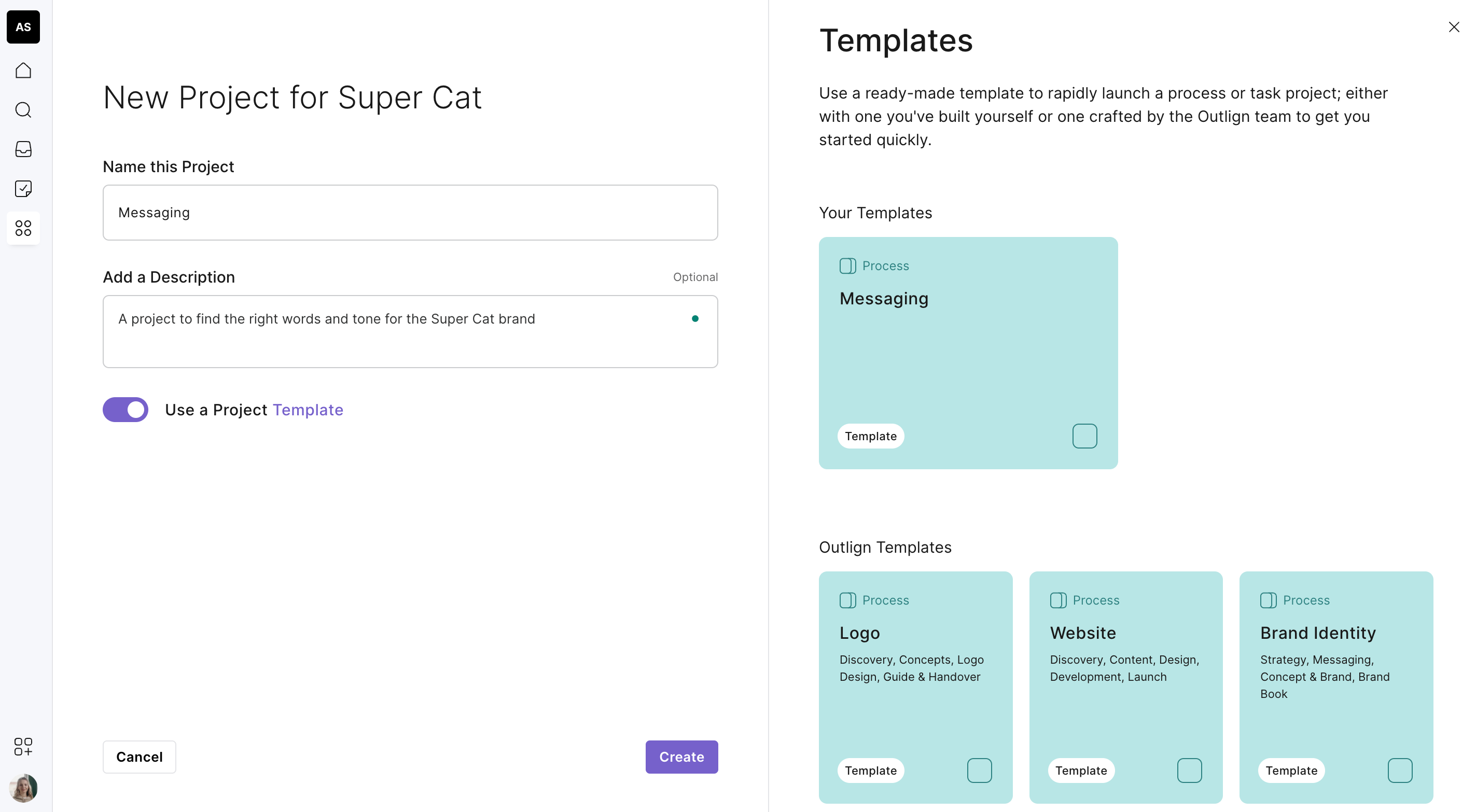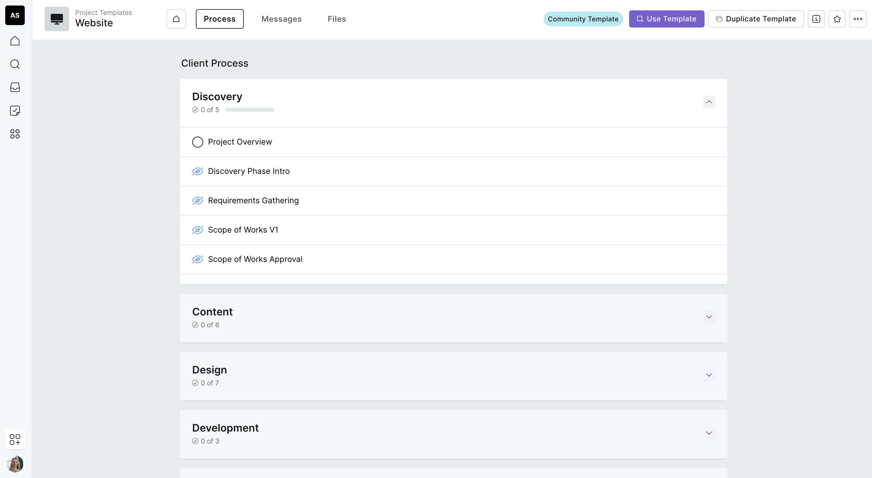You can add as much detail as you need. When it comes to making your project live, all you will need to do is hit 'Use Template' and your template will spin up into a brand new project for your selected client;