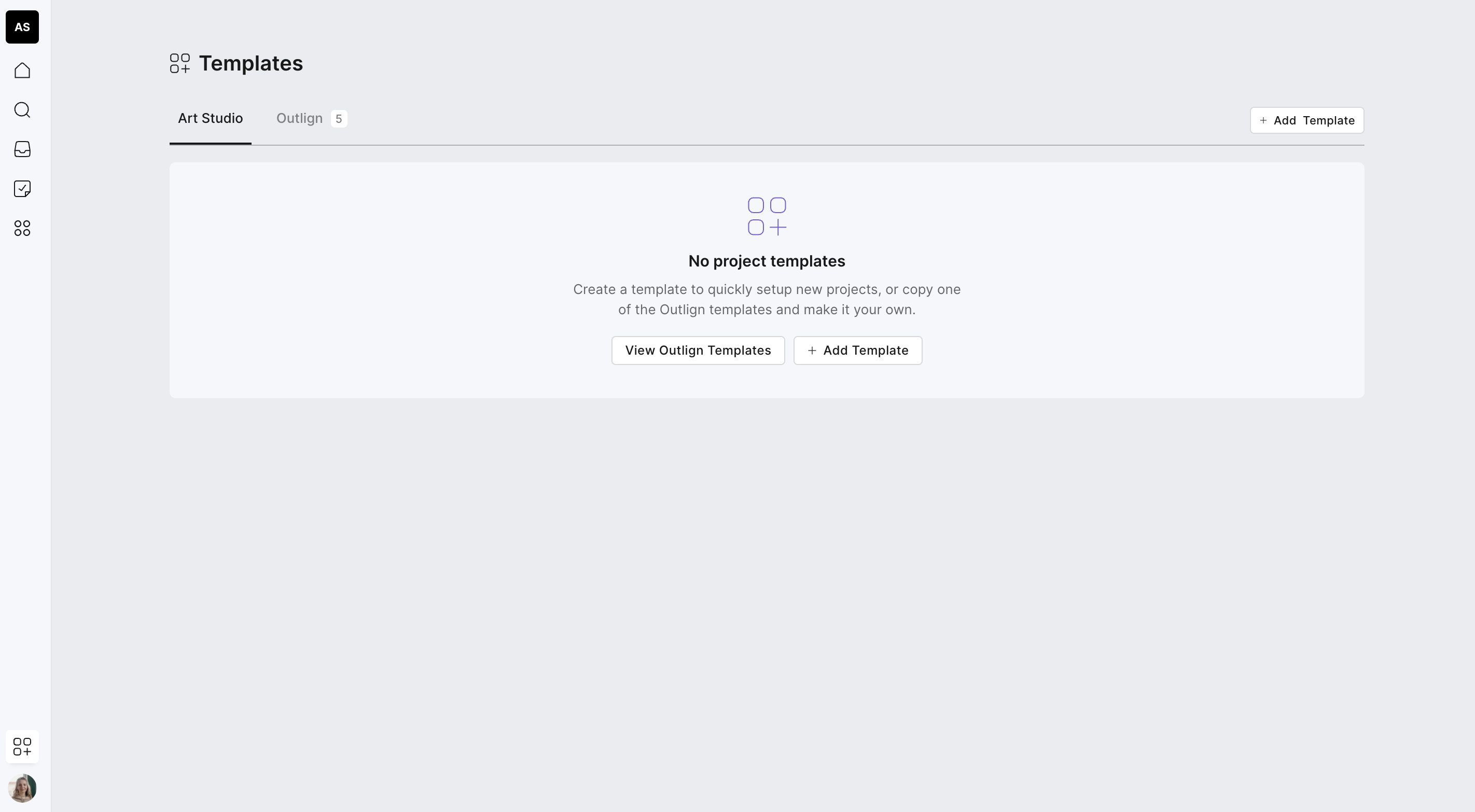 Go to your studio templates by locating the templates icon in the vertical left-hand navigation (right above your avatar profile)