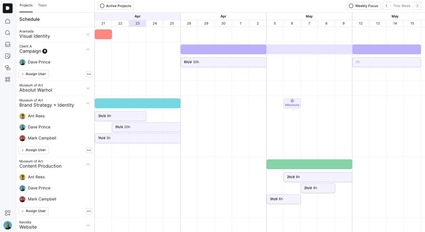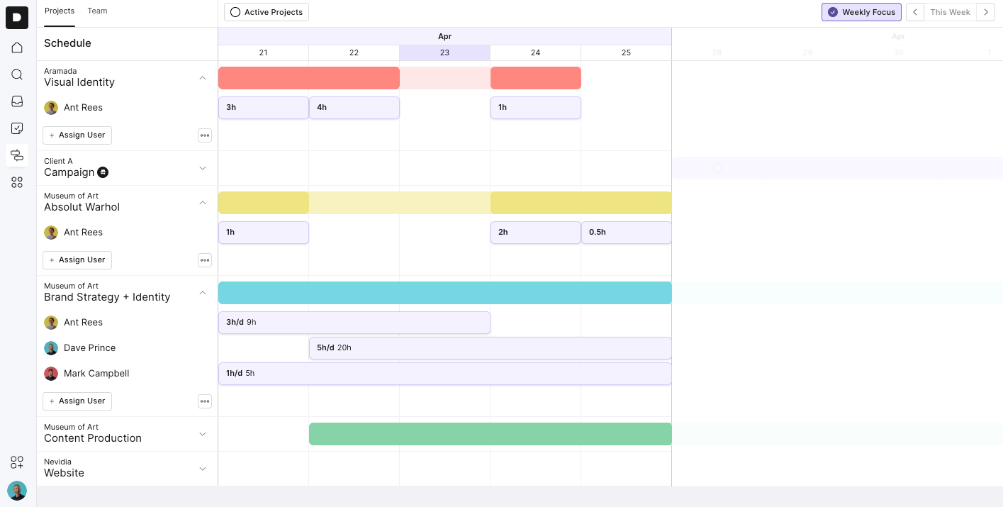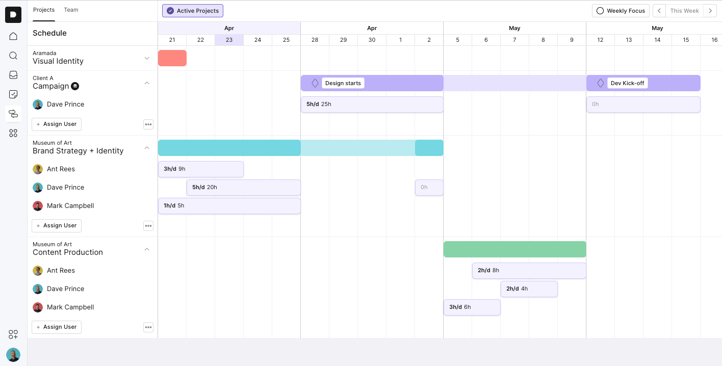 Use the Active Projects toggle to hide any paused or non-scheduled projects. This keeps your schedule clean and focused.